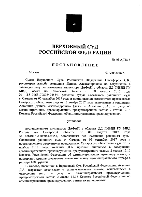 Вчера Российская газета опубликовала новость о том, что Верховный суд отменил решение о штрафе за нарушение ПДД, которое было вынесено на основании одной фотографии с автоматической камеры. И тут же толпа "журналистов" кинулась тиражировать эту публикацию не удосужившись ни почитать само решение (увы, Российская газета ошиблась в фамилии героя публикации и найти его было не так просто), ни изучить действующее законодательство. Результатом стали заголовки типа "В России запретили штрафовать по фото". Огорчу вас - никто ничего не запрещал. Однако, решение Верховного суда очень важное и заслуживает детального анализа. Сначала немного про прямые юридические последствия этого решения. Они есть только для Дениса Асташина, постановление в отношении которого отменили. На всех остальных автомобилистов России решение Верховного суда не распространяется, в РФ не прецедентное право. Тем не менее, в российской судебной системе сложилась практика, согласно которой нижестоящие суды очень внимательн