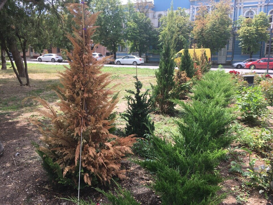 Деревья и кустарники, которые несколько месяцев назад высадили в парках и скверах города, пытаются спасти. Почему растения засохли, Крым.News сообщили в администрации столицы. – Зелёные насаждения поливают работники МБУ «Город» согласно графику полива с учётом выпадения осадков. Высадку и технологический уход за растениями также было поручено выполнять МБУ «Город», –рассказали в ведомстве. По их информации, деревья могли не прижиться по нескольким причинам. – Стоит учитывать биологические особенности каждого зелёного насаждения, требование к почвам, климату, влаге и другие условия произрастания. Зачастую, на городских территориях очень сложно подобрать самые оптимальные условия почвенного покрова для высадки деревьев. В земле могут быть камни, щебень, известняк, каменистые породы. Из-за этого растения в полном объеме не получали питания минеральных веществ, – отметили в администрации. Также специалисты добавили, что засушливое лето и стрессовые состояния при пересадке зелёных насажд