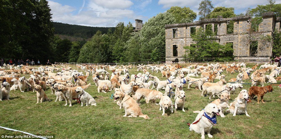 Море, состоящее из 361 золотистого ретривера, наводнило шотландскую усадьбу (9 фото)