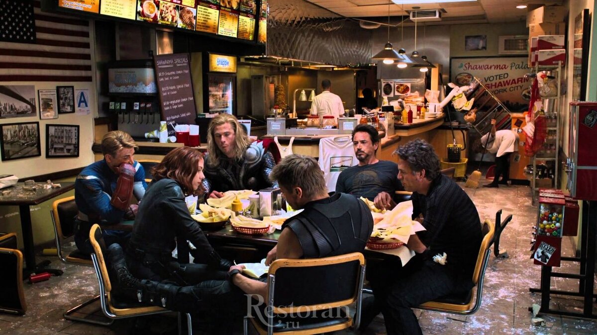 Супергерои – тоже люди. Знаменитая киноэпопея рассказывает о них самые разные вещи: о привычках, увлечениях и характере. Последний фильм «Мстители. Война бесконечности», вышедший на экраны в мае, – не исключение. Нам, конечно, интересней всего, что же мстители едят и как вообще их жизнь связана с гастрономией. Например, Человек-муравей в первом фильме работал в известной мороженице «Баскин Роббинс» Шаверма после титров Самая знаменитая сцена из «Мстителей», связанная с едой – кадры после титров первого фильма. Мы видим, как герои сидят за столом в забегаловке едят шаверму или, как привычней для некоторых, – шаурму. Тони Старк – Железный человек (Роберт Дауни-младший) предложил её своим коллегам после клинической смерти в бою. Американские маркетологи утверждают, что продажи этого нехитрого блюда в лаваше после премьеры выросли на 80%. В некоторых источниках явление даже называют «эффектом Дауни-младшего». Фото: youtube.com Чизбургер и пончики для Старка В целом, гениальный изобретате