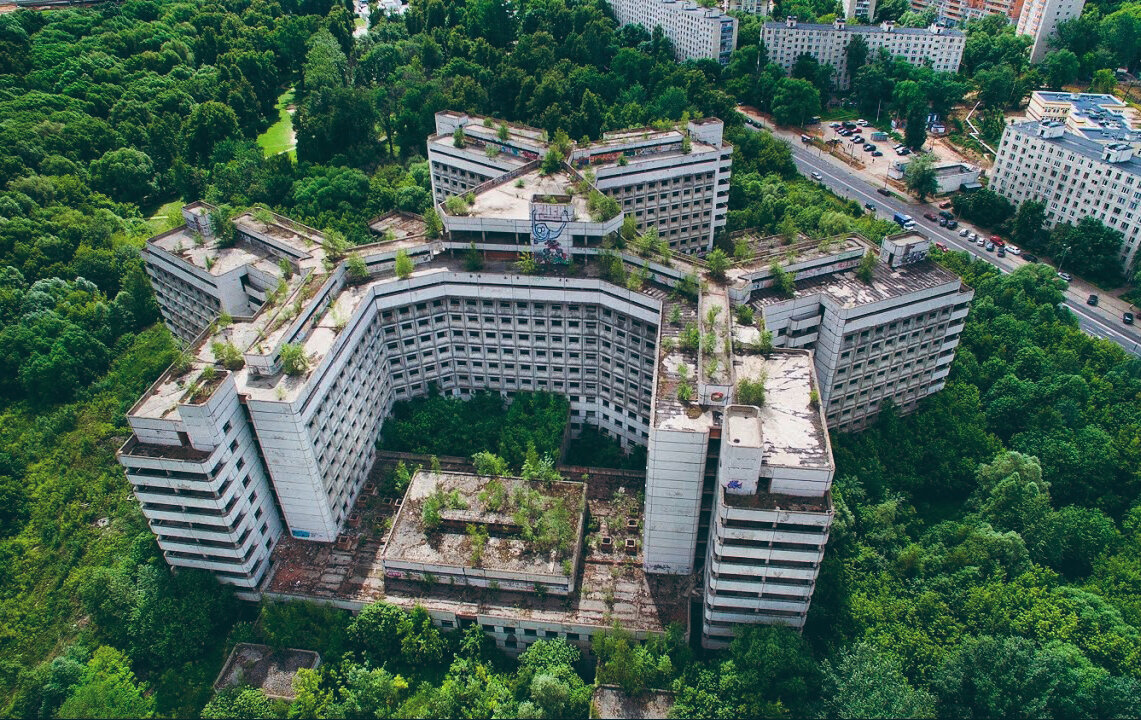 -Ребят, там действительно страшно. Так начал рассказ об этом месте, мой знакомый. Этого вполне хватило, чтобы мы решились поехать туда прямо сейчас, не теряя ни минуты. Нам захотелось приключений. Ховринская больница весьма интересное место, с пугающей историей. Говорят, что там собирались сектанты, сатанисты и зафиксированы случаи суицида. Очень много легенд окружают это место. Приехав туда, мы не увидели охраны и пошли осматривать территорию. Место жуткое, скорее за счёт своей истории, чем за счёт своего внешнего вида. На фото она выглядела весьма мрачно и пугающе. В жизни же, обычное заброшенное здание каких сотни. Конечно, стоит отдать должно проектировщикам, они постарались на славу. Но к сожалению, с каждым годом здание всё больше разрушается. Блуждая по коридорам, мы успели изрядно испугаться когда наткнулись, на такую же группу экстремалов. Это пожалуй, был самый жуткий и одновременно смешной момент. Мы были весьма осторожны, так как известны случаи пропажи людей в этих