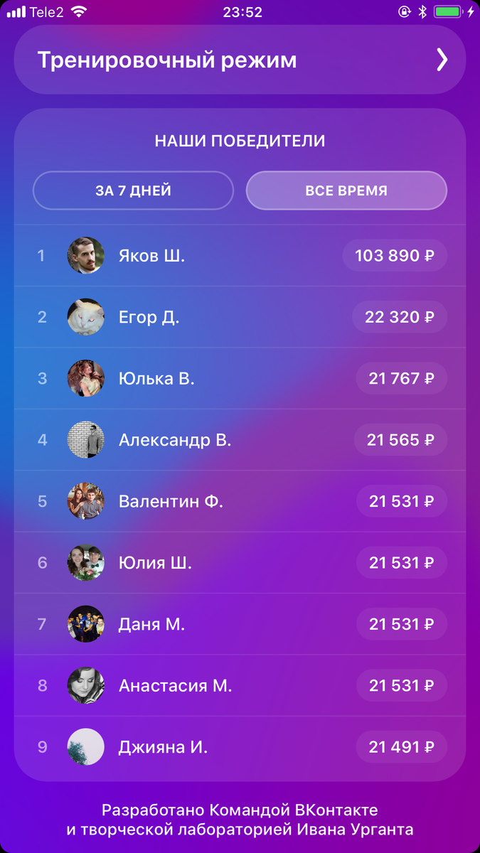 С понедельника по пятницу в 13:00 и 20:00 по московскому времени ведущие разыгрывают денежные призы, по будням можно выиграть по 50 000 рублей днем и такую же сумму вечером. По выходным игра проходит только в 20:00, но с денежным призом гораздо больше, целых 100 000 рублей. Бывают исключения, например, когда приходят знаменитые гости, разыгрывают аж 200 000 рублей. При поддержке спонсоров денежные призы больше, порядка 400 000 или даже 1 миллиона рублей. Вся сумма делится между победителями игры, которых в среднем около 100 - 2000. В главном меню есть имена героев с самыми большими выиграшами: Чтобы поучаствовать в игре, нужно зайти в приложение с помощью своего аккаунта во «ВКонтакте». На ответы дается по 10 секунд, а всего в викторине 12 вопросов на различные темы, но иногда бывает и 15, если денежный приз выше. Для каждого вопроса дается всего 3 варианта ответа. Если вы ответите неправильно, вы можете использовать дополнительную жизнь (но только до 11 вопроса) , которую можно прио