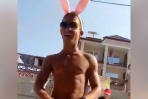 Парень не только торгует креветками, но и устраивает отдыхающим искрометные юмористические шоу: видео.