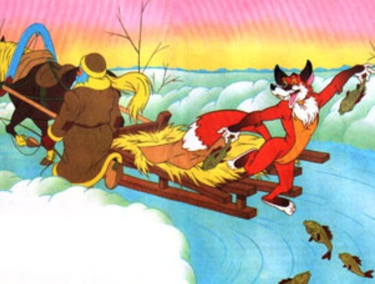 Сильно проголодалась Лиса. Бежит по дороге и смотрит по сторонам: нельзя ли где-нибудь чем-нибудь съестным разжиться? Видит она: везёт мужичок на санях мёрзлую рыбу.
