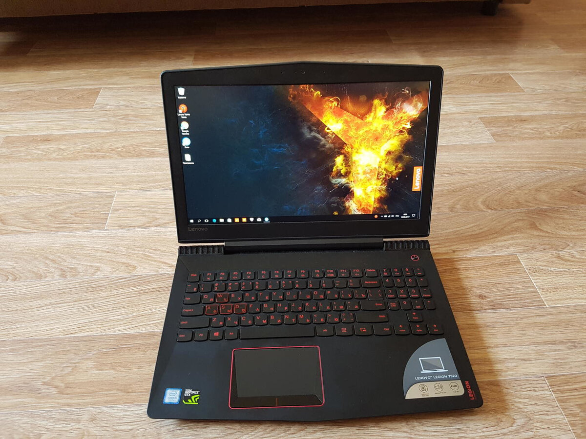 Lenovo Легион Y 520 это 15 дюймовый ноутбук изготовлены из пластика с текстурой под карбон, ребрами жесткости и это придает ему строгий вид. Но стоит нам его открыть и сразу видно что это игровой ноутбук, здесь приветствуется ярко-красная клавиатура, красный ограненный тачпад, красная кнопка включения. У клавиатуры имеется красная подсветка двух уровней, акустическая система "Нarman" она состоит из двух динамиков по 2 ватта. Вернее сказать "Нarman" только сертифицировала звук. Экран 15.6 дюймов разрешение 1920 × 1080 матовый IPS дисплей достаточно приличного качества. Работает на процессоре Intel Core i5-7300HQ и видеокарте GTX 1050 Ti 4GB GDDR5, оперативная память 8GB DDR4-2400. Крышка ноутбука выполнена из пластика с небольшим рифлением в целом всё собрано достаточно прочно, крышка твёрдый пластик, открывается одной рукой толщина составляет почти 26 мм а вес - 2,5 кг. Это самая сбалансированная конфигурация по цене и производительности для игр. Здесь хорошая акус