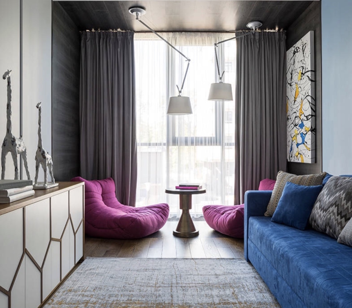 Чем чище цвет, тем он навязчивее. Звонкие яркие тона бывают хороши в детской, на кухне и в ванной — и то в разумной дозировке. В остальных случаях лучше предпочесть сложные смешанные цвета с добавлением черного или серого (затемненные, припыленные) и белого (разбеленные, пастельные). Такой интерьер выглядит благороднее и взрослее. Чистый яркий цвет, как правило, требует нейтрального фона и строгой минималистичной обстановки.