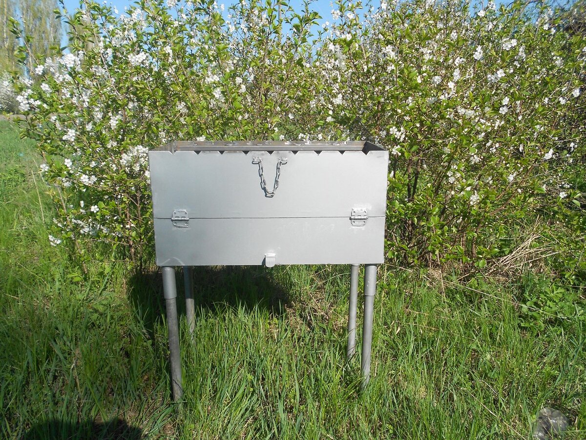 Всех приветствую . Хочу рассказать о своем мангале микроволновке . Моя профессия и хобби - сварка . Хорошо , когда профессия перетекает в хобби , и наоборот . За свою жизнь я сварил много разных мангалов . Данный мангал был сделан несколько лет назад , и это был один из первых моих мангалов . Долго зависал на ютюбе , смотрел как умельцы делают разные модели мангалов . Хотелось сделать самый лучший ! Когда впитываешь много информации - результат не заставит долго ждать . Решил сделать мангал с двойным дном и регулируемым поддувалом . К тому же второе дно исполняет функцию духовки и микроволновки . Когда разжигаешь дрова , духовка полностью открыта для максимальной тяги . Затем , когда угли нагорели , закрываем второе дно ( духовку ) и жарим шашлык . Но, вот в чем фишка - второе дно можно использовать как духовку . Пока жарим шашлык , можно разогреть любую пищу , и даже испечь картошку . Мангал , на самом деле получился самый лучший ! Ну и чтобы мой мангал не только стоял на участк