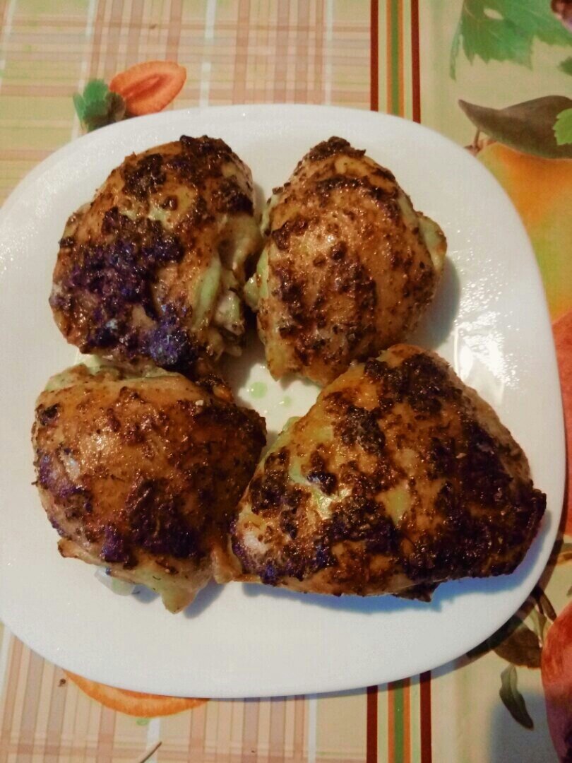 Смазываем верхнюю кожицу курицы этой смесью (полностью валять курицу в соусе не надо).