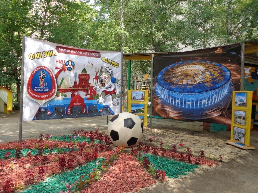 Конкурс призван создать благоприятную эколого-развивающую среду на территории дошкольных образовательных организаций. Одной из его основных тематик в этом году стало отражение главного события лета - чемпионата мира по футболу. В частности, на территории детского сада №37 появилась клумба в форме мяча. Цветочная спортивная фанзона встретила детей и родителей утром в дошкольном учреждении №24 «Радость». Приветствует известным хештегом о любви к игре в футбол и детский сад №108. Ярко-желтые рудбекии отлично гармонируют с футбольным мячом на территории дошкольного учреждения №44.