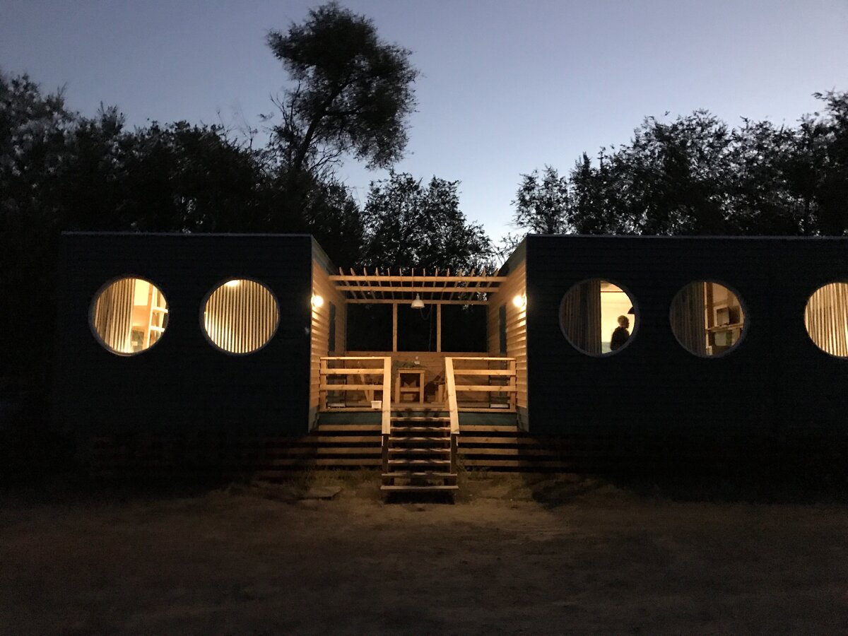 На Камчатке достаточно суровый климат и местные жители не представляют свою жизнь без купания в горячих термальных источниках: это их лечит, это веселит, вселяет силы. В свое время мы выкупили астраханскую базу отдыха «Причал рыбака», которая была в минусе. После выведения ее «в ноль»,решили сделать «поле экспериментов» — создавать архитектурные формы, которые будут экономически себя оправдывать в 2-3 сезона. Расширяя номерной фонд, хотели предложить рыбакам странное, удивительное жилье, отличающееся от бревенчатых домиков, изб, срубов, каркасных двухэтажных «генеральских дач» и придумали Глазастик. Проект Глазастик должен был включать в себя 5 элементов: 1. Удобная планировка Комната не должна была иметь перегородок — это гостиничный номер, но с мини-кухней и гостиной. Уместили в размер 6×4 м. 2. Дом поднят от земли. Когда здание стоит на земле, оно промерзает зимой и стоит сырость вплоть до июля. Во избежании таких неприятных моментов подняли дом на 1,5 м. от земли. 3. Вместимость