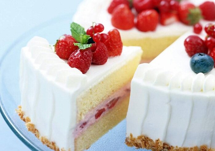 Домашний торт без выпечки можно приготовить не только с клубникой - используйте любые свежие ягоды по сезону. Кроме того, не хуже получится и с фруктами на ваш выбор. Йогурт выбирайте тот, который нравится, жирность творога подбирайте под себя, а количество сахара - как любят в вашей семье. Жирные сливки (не менее 30-33%)