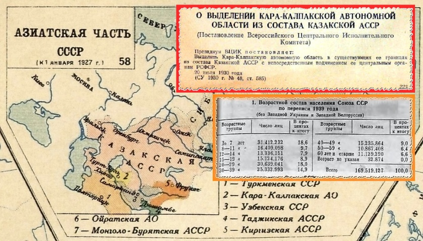 По переписи 1939 года численность Омской области равнялась – 2.366.603 человека, Кара-Калпакской АССР – 190.000 человек.