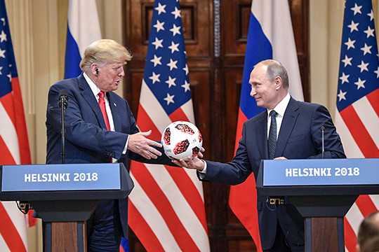 Напомним, во время совместной пресс-конференции после саммита в Хельсинки, отвечая на вопрос, за кем сейчас инициатива по Сирии, Путин вручил Трампу мяч ЧМ-2018, сказав, что мяч теперь на его стороне. Трамп передал подарок своей супруге Меланье и пообещал, что он достанется их младшему сыну Бэррону.