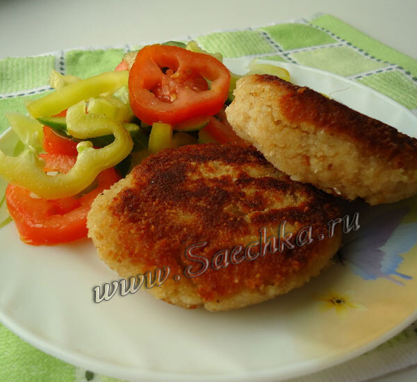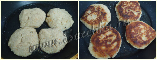 - Приготовить котлеты. Масса трудно лепится, лучше сформировать шарики влажными руками - обвалять в панировочных сухарях и лепить как снежные комки.