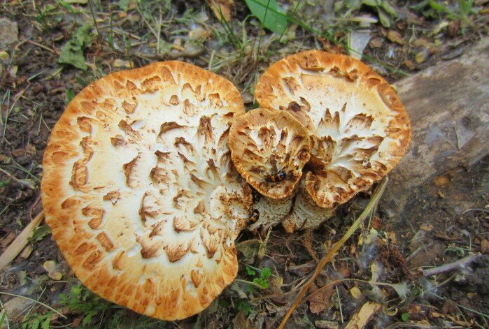 Это видео о грибах на пнях. Гуляя по парку, я встретила очень большой гриб, и решила сделать о грибах видео. Меня удивил большой размер этого гриба. Царство грибов отличается большим разнообразием. Специалисты подсчитали, что их от 100 тысяч до 1,5 млн видов. Грибы — это симбиоз растений и животных, они сочетают признаки и тех, и других. На пнях, и даже на живых деревьях можно встретить и съедобные и несъедобные грибы. Вот это гриб-трутовик называется трутовик чешуйчатый, трутовик пёстрый, или пеструшка, пестрянка. Оказывается он съедобный. Появляется в мае. Предпочитает древесные остатки лиственных деревьев. И молодые грибы очень вкусные. А вот старые грибы накапливают различные вредные вещества из почвы, воды и воздуха. Размеры у этих грибов бывают разные. Я вот встретила в нашем парке такие большие грибы, громадные грибы. Есть грибы и поменьше. Конечно, их в городе никто не собирает. В экологической системе Земли грибы играют большую роль. Они утилизируют мёртвые органическ