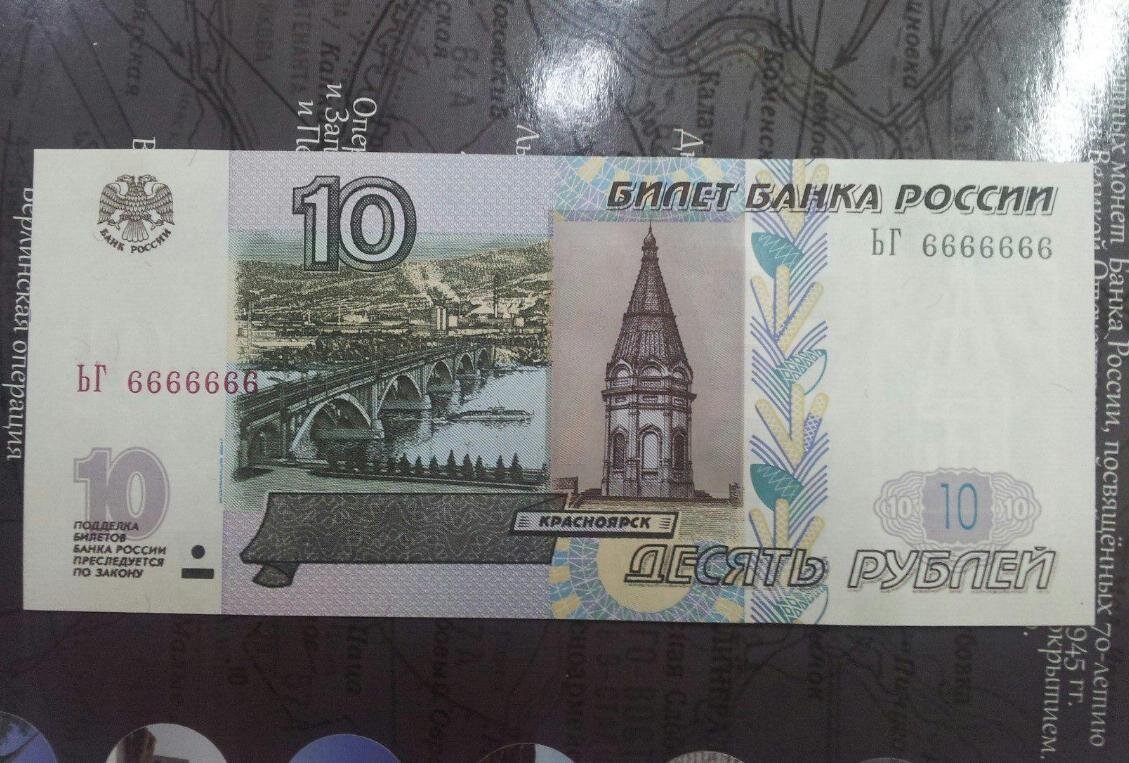 Все большую тенденцию по цене и интересу набирают банкноты с красивыми номерами. Всем известно, что тиражи бумажных денежных знаков огромны. И каждая купюра под своим уникальным семизначным номером. Есть даже отдельная ветка коллекционирования бон и купюр - это бонистика. Бонисты (коллекционеры банкнот) высоко ценят банкноты с одинаковыми номерами, сегодня посмотрим на одну из таких. Перед вами 10 рублей 1997 года, модификации 2004 года. Она сразу привлекает внимание своими цифрами: все семь цифр состоят из повторяющейся цифры "6". Кроме того, бона находится в состоянии сохранности пресс (PRESS, идеальное). Это означает то, что она никогда не деформировалась, не сгибалась пополам и так далее. В совокупности эти два фактора (крутой номер и идеальная сохранность) делают обычную банкноту супер артефактом. По сути, это бонистическая редкость за которую бонисты готовы отдать весьма солидные деньги. По последней проходке есть информация, что такую банкноту купили за 20 000 рублей. Так чт