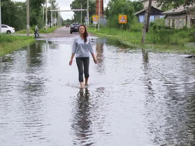 После обильных дождей вышли из берегов кюветы, вода хлынула во дворы, подъезды и огороды. Население посёлка Смидовича взывает о помощи…