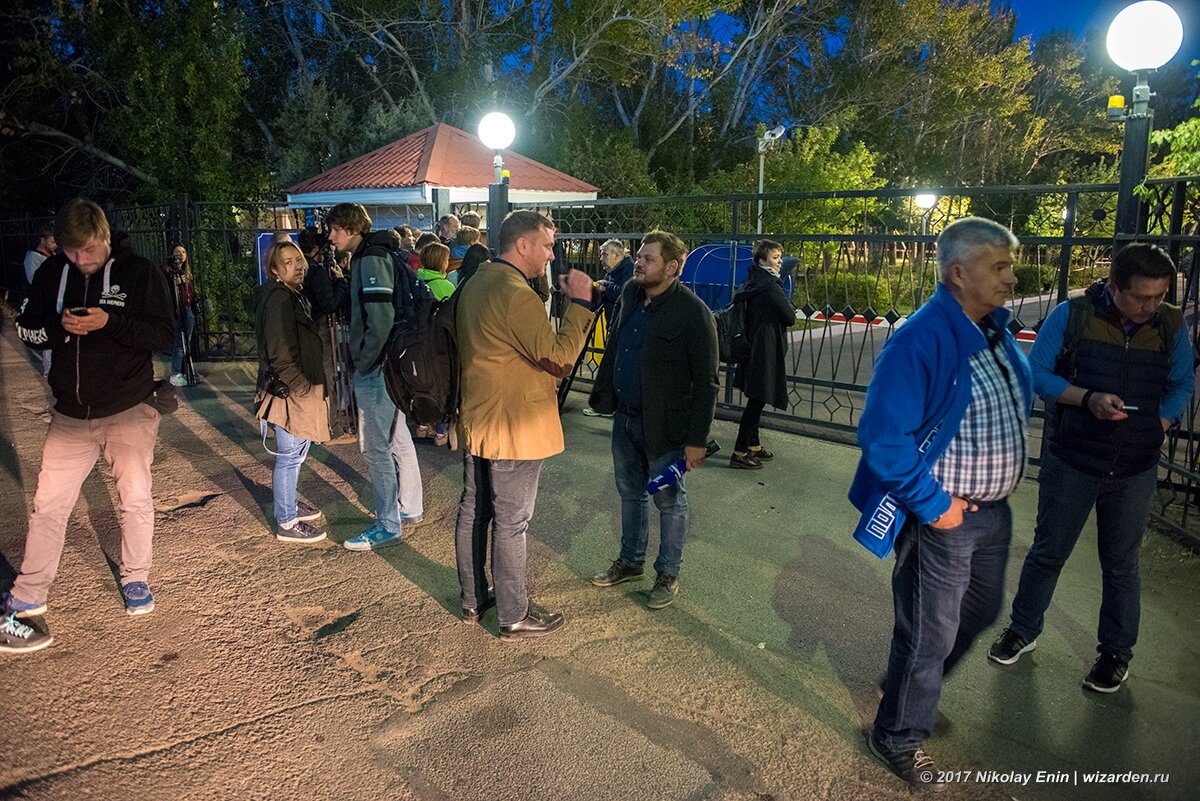 Он огорожен лентой для родственников и других важных провожающих, и внешним кругом с заборчиком для всех остальных.