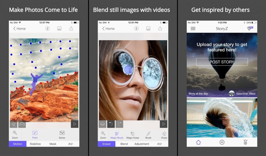 iOS StoryZ Photo Motion StoryZ предоставляет пользователю возможность трансформировать фотографии, добавляя простой эффект «движения». С помощью инструментов приложения вы можете отодвинуть определенные элементы на задний план или встроить видео внутрь фотографий. Скачать StoryZ Photo Motion для iOS Battle Royale IRL Battle Royale IRL изменяет вашу стандартную сессию в пейнтбол или лазертаг, добавляя правила одноименного жанра. Выберите зону, где у вас намечена игра, приложение ее обрисует и начнет постепенно сужать. Игроки, оказавшиеся за пределами игровой зоны, проигрывают — в конце остается лишь один. Скачать Battle Royale IRL для iOS MAVIS Pro Camera Mavis превращает iPhone в настоящую камеру для съемок. Приложение позволяет регулировать выдержку и фокус прямо во время съемки, а в опциях можно настроить индикаторы состояний, какой микрофон используется во время съемки, баланс цвета и многое другое. Mavis — не новое приложение, но с июля оно перешло на IAP формат с платного. Скачат