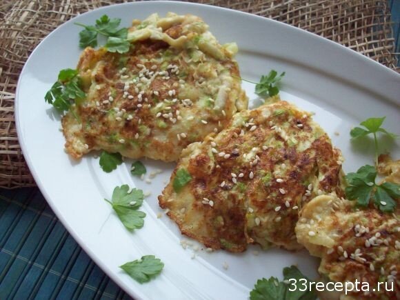 Это блюдо я придумала, приготовила и сфотографировала за 15 минут. Экстремально быстро и вкусно. Конечно, если вы любите кабачки. Сейчас самое время. Оладьи из кабачков с сыром — вариация уже популярных моих кабачковых оладушек. Но без капли муки. Оладьи из кабачков с сыром Общее время приготовления: 25 minutes Порций: 2 Ингредиенты: Кабачок для оладий натираем в крупную тёрку. Добавляем яйцо. Добавляем натёртый сыр. Солим и перчим. Выкладываем на нагретую и смазанную растительным маслом сковороду и обжариваем с каждой стороны по 5 минут. Выкладываем оладьи из кабачков на сервировочную тарелку и посыпаем кунжутом. Приятного аппетита! Ставьте лайк и подписывайтесь на мой канал 33рецепта! Впереди еще много хороших рецептов!