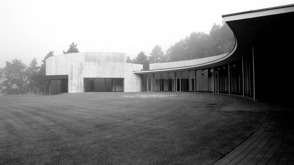Представляем ещё 5 замечательных модернистских домов Литвы. Часть 2 В современном литовском жилище переплетаются традиции местной и европейской архитектуры и современного функционализма. Вилла Н в Литве от Audrius Ambrasas Architects. Этот спиральный дом построен на живописном холме над рекой в окрестностях литовской столицы. Дом как бы вырастает из земли, чтобы исчезнуть где-то в окрестностях. В центре планировочной спирали находится столовая с большим двусветным пространством, завершённым круглым зенитным фонарём. Все частные помещения разместились в единственном вытянутом луче с полукруглой галереей, закрывающем ухоженный двор от соседей и организующим выход на крытую террасу. PS Чёрно-белые фото — это, конечно, сильный художественный приём. Но хотелось бы в цвете, и побольше размером (на сайте авторов очень уж маленькие). Тем более, что место просто волшебное. Жилой дом UTRIUOSE в Литве от Natkevicius G. and Partners. Этот деревянный дом построен для одной семьи недалеко от Клайпе