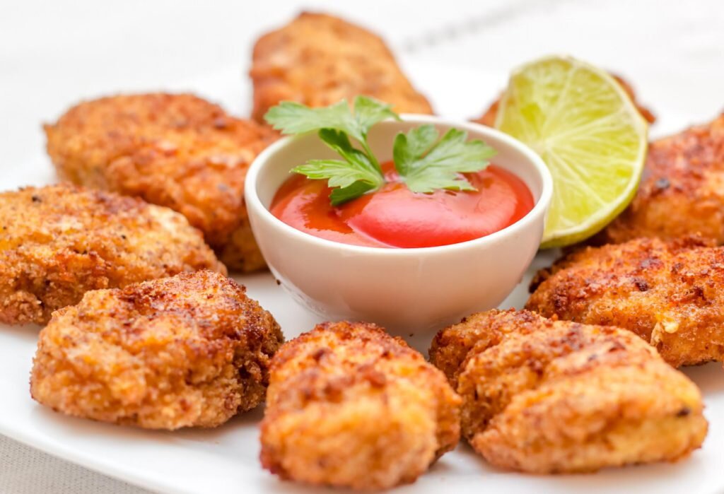 💥Куриные наггетсы💥 Ингредиенты: • куриные грудки – 2 шт. • яйца – 2 шт. • молоко – 0,5 стакана • панировочные сухари – 1 стакан • мука – 2 ст.л. Приготовление: 1. Срезаем мясо с костей и нарезаем небольшими кусочками. 2. Каждый кусочек солим, перчим и обваливаем в муке. 3. Далее макаем во взбитые с молоком яйца и основательно обваливаем в сухарях. 4. Жарим во фритюре небольшими порциями. После обжаривания кладем наггетсы на бумажные полотенца, чтобы впитать лишний жир. Приятного аппетита!
