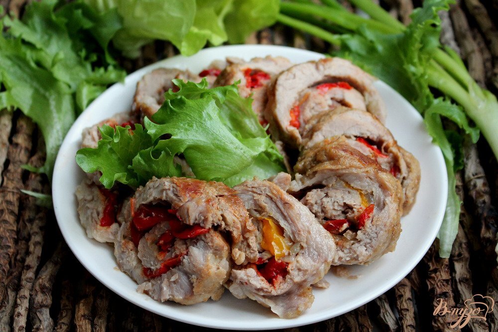 💥Мясной рулет с болгарским перцем и сыром💥 Ингредиенты: • говяжий фарш – 400 г • твердый тертый сыр – 100 г • тертый пармезан – 30 г • болгарский перец – 2 шт. • панировочные сухари – 2 ст.л. • яйцо – 1 шт. • зелень Приготовление: 1. Сладкий перец нарезать соломкой и тушить на оливковом масле до полуготовности под закрытой крышкой, после чего дать ему остыть. 2. Фарш смешать с сыром, добавив панировочные сухари, яйцо, соль и перец. 3. Мясную смесь положить между двумя слоями бумаги и скалкой раскатать пласт толщиной 0,5 см (примерно 20 на 25 см). 4. Снять верхний слой бумаги, всю поверхность посыпать тертым пармезаном и мелко порезанной зеленью, выложить болгарский перец и с помощью нижнего листа бумаги свернуть в рулет. 5. Завернув рулет в бумагу для выпечки, сформировав в виде конфеты, запечь в духовке в течение 30–40 минут при температуре 180 градусов. 6. Вынуть рулет из духовки, дать немного остыть, нарезать и сразу же подавать. Приятного аппетита!