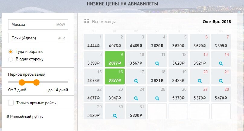 Цены в октябре на перелёт туда-обратно в Сочи (Адлер) растаяли.