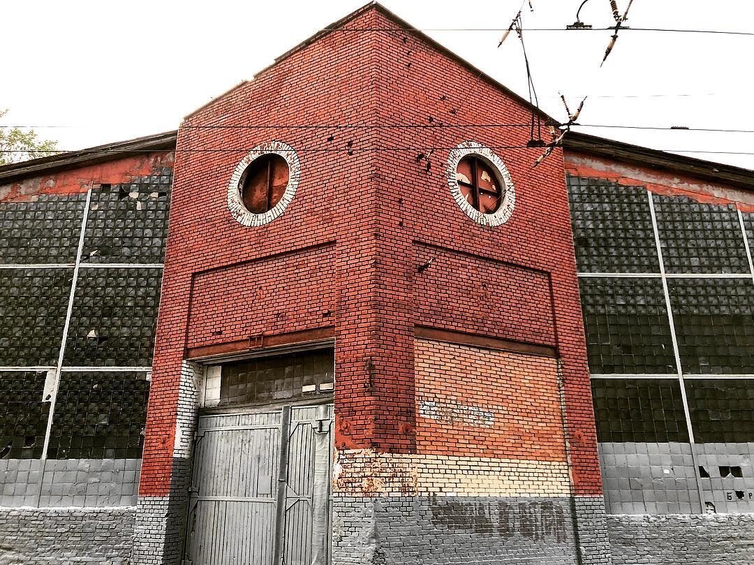 Через ворота в этих экспрессивных торцевых фасадах, врезающихся в Новорязанскую улицу, как ледокол в льдину, должны были въезжать и выезжать грузовики. Эту невидаль придумал Константин Мельников, повелитель архитектурной формы. Участок, выделенный под строительство, был в плане так крив, что рационально вписать туда что-то традиционное было трудно. Поэтому архитектор избавился от всей этой темы с разворотами и построил гараж в форме подковы: транспорт въезжал с одной стороны и, сделав полукруг, выезжал в другой части улицы. Чтобы места для реализации было по-настоящему достаточно, пространство внутри не должно дробиться опорами. Что делать? Для таких задач есть Шухов. Инженер пришёл и сделал стальные фермы, опирающиеся только на внешние стены и оставляющие пространство гаража полностью свободным. Место опоры каждой фермы на стену снаружи усилено ступенчатыми кирпичными кронштейнами. Над ними ленточное окно, опоясывающее сооружение по всей длине. Как тогда любили и как теперь учимся лю