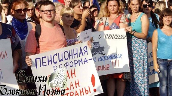 Народ сегодня митингует, Волна протестов по стране, Достала, всех уже реформа И надоело жить в говне. Работать надо теперь дольше Чтоб прокормить семью, детей До пенсии как до Китая Осталось очень много дней... 28.07.2018 #мининг #пенсия #реформа #Москва