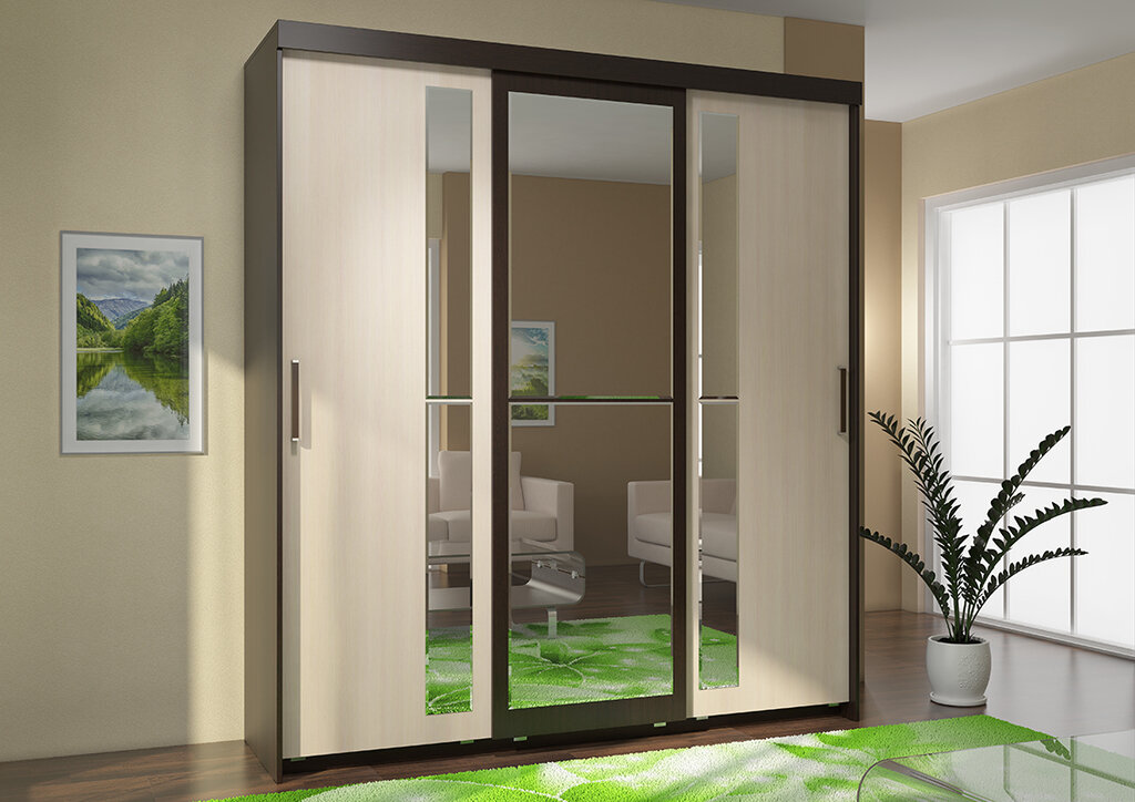 Обычный шкаф купе 2 метра высотой имеет глубину 60 см. А вот количество отсеков и, соответственно, количество дверей зависит от длины шкафов.