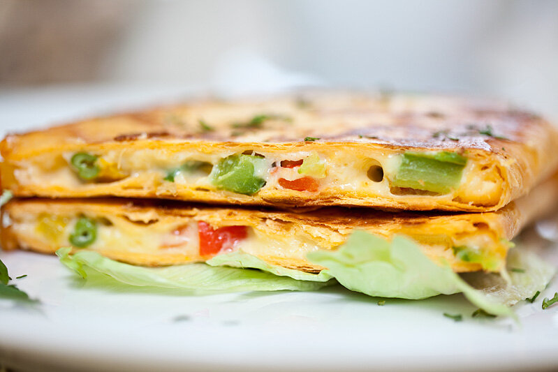 Вкусная вегетарианская кесадилья Ингредиенты на 1 порцию: Метод приготовления Для приготовления кесадильи используем замороженную стручковую фасоль, однако свежая будет гораздо лучше. Нарезаем ее брусочками не более 1 см, а болгарский перец - кубиками 1х1 см. В удобную посуду разбиваем яйца и перемешиваем их с натертым на крупной терке сыром. Солим и перчим по вкусу, ненадолго отставляем сырно-яичную смесь. Выкладываем овощи на предварительно разогретую с оливковым маслом сковороду, соответствующую диаметру тортильи, и обжариваем их до полуготовности. Периодически помешиваем, чтобы не пропустить момент появления корочки. Снимаем с огня и перекладываем в отдельную емкость. В ту же сковороду выкладываем целую тортилью. На одну половинку тортильи выкладываем обжаренные овощи, заливаем их яично-сырной смесью и закрываем второй половинкой лепешки. Обжариваем в течение 5 минут, осторожно (чтобы не распалось) переворачиваем лопаточкой на другую сторону и жарим еще 5 минут. Выкладывае