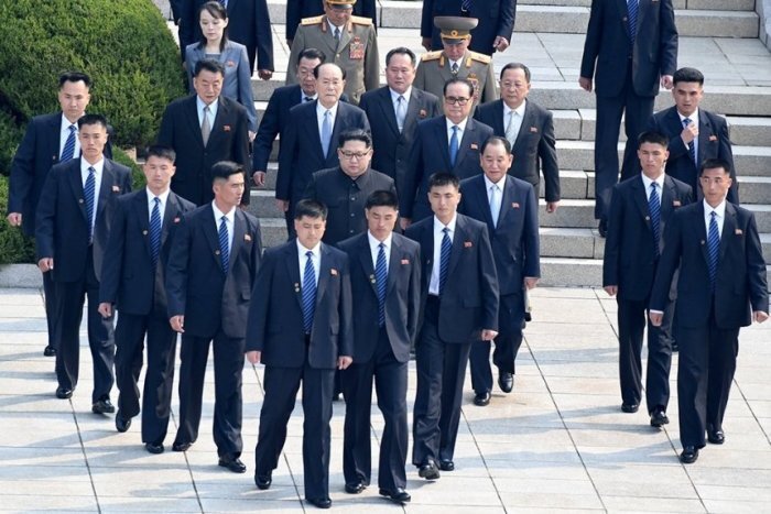 Во время пребывания Кима в Северной Корее вокруг лидера обычно три линии охраны. В Сингапуре для обеспечения безопасности КНДР применила несколько иную конфигурацию. В результате взгляды окружающих были прикованы к бегущим людям в темных костюмах. Охранники, которые бежали по обе стороны от лимузина Кима и телохранители, пребывающие в непосредственной близости к лидеру страны, являются сотрудниками «Отдела №6» Центральной партии, также известного как Главное управление адъютантов.