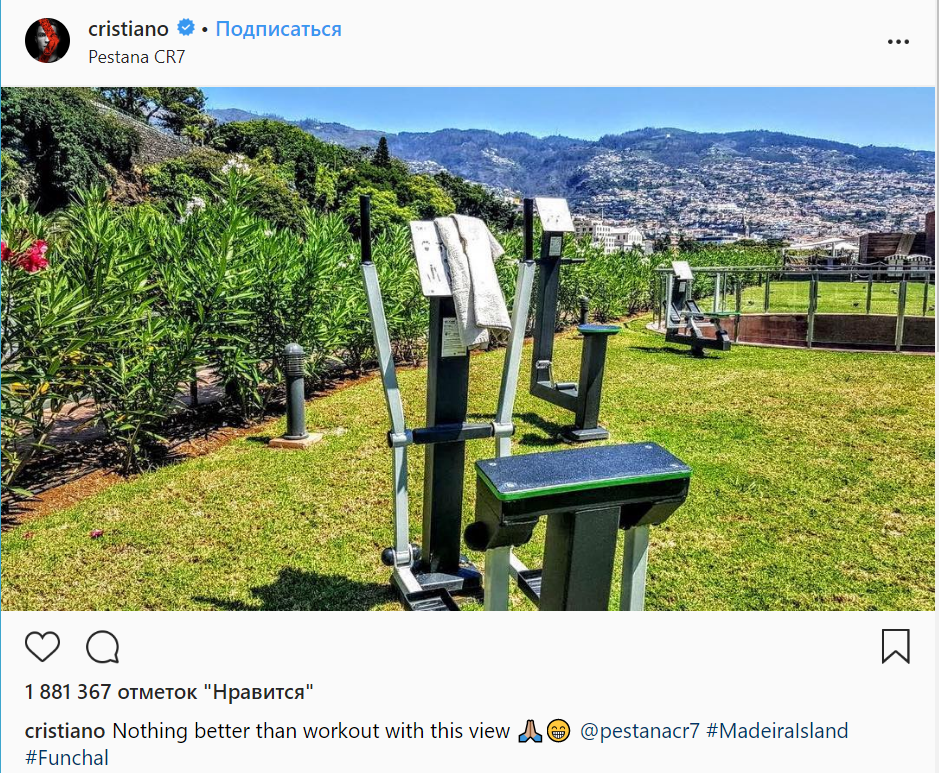 Как тренироваться как Криштиану Роналду? Всё мечтают быть как Криштиану Роналду. Это конечно невозможно. Но что возможно делать: это тренироваться как CR7. В этой статье мы рассмотрим как организовать и отредактировать свои тренировки в стиле нашего героя. Первое и самое важное - постоянство. Даже отпуск - это не повод не тренироваться. Всегда возможно найти, что-нибудь: простой бег, упражнения с собственным весом, или как Роналду - уличные тренажеры. Источник фотографии: https://www.instagram.com/cristiano/ План состоит из двух частей: (1) питание, (2) тренировки. Никакого секрета в этой разбивке? Всё самое интересное в деталях (и постоянстве). Давайте разбираться. (1) Питание (белок и лимит калорий) Питание, возможно, даже более важно, чем тренировки. Феррари из Формулы 1 не может ездить на базовом (и дешевом) 92-ом бензине. Очевидно, просто смотря на нашего героя, что с диетой у него всё отлично. Количество потребляемых калорий не превышает расход (тренировки и затраты в покое).
