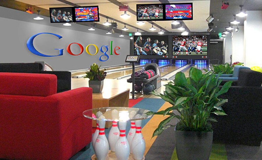 После красочного приветствия перед вами откроются двери в боулинг-зал. Над дорожками, которых в общей сложности насчитывается 25, висят два Google TV. На выбор синие, красные, зеленые и желтые мячи – цвета а ля Google. Опытные игроки будут приятно удивлены возможностями синхронизации новостей о забитых страйках с сервисом Google+ Circles и размещения видеороликов триумфальных моментов на YouTube. Однако перед этим следует зарегистрироваться на этом канале. Тем же, кто не слишком искушен в игре, поисковая машина Google предложит ссылки на обучающее видео со своих ресурсов и YouTube. Для настоящих игроков, набравших более 300 очков, вводится сервис Google+ 1 Pin, перенаправляющи