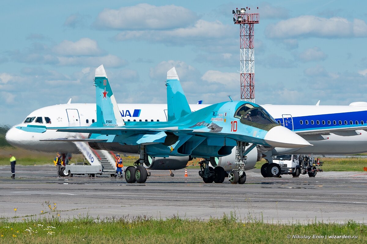 Авиагруппа прибыла для участия в авиашоу на аэродроме Мочище под Новосибирском. На этот раз "Соколы" прилетели на четырёх Су-35С и одном Су-34. Снимаем их в военной зоне Толмачёво на стоянке и немного в воздухе.