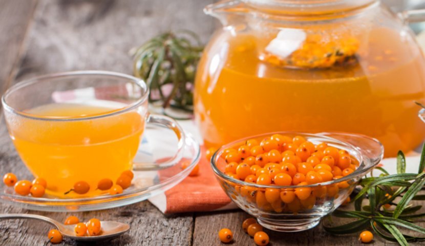 Облепиховый чай – это горячий напиток, который можно сварить очень быстро в любое время суток. Для этого подойдут как свежие, так и замороженные ягоды, которые используют в чистом виде или сочетают с другими ингредиентами. Можно готовить чай не из плодов, а из листьев и даже коры. Как это сделать, будет рассказано в статье. СОСТАВ И ПОЛЕЗНЫЕ СВОЙСТВА ЧАЯ ИЗ ОБЛЕПИХИ Готовят классический чай из облепиховых ягод или листьев, горячей воды и сахара. Но существуют рецепты с добавлением других плодов или трав, поэтому состав продукта будет меняться в зависимости от компонентов, в него входящих. КАКИЕ ВИТАМИНЫ СОДЕРЖАТСЯ В НАПИТКЕ Облепиха считается ягодой, в которой много витаминов. И это действительно так: в ее составе – соединения группы В: Также присутствуют витамины Р, С, К, Е и каротин. Первые два – известные антиоксиданты, защищающие клетки от повреждений и продлевающие молодость, а витамин Р разжижает кровь и делает эластичнее и крепче стенки капилляров. Токоферол влияет на репродукти