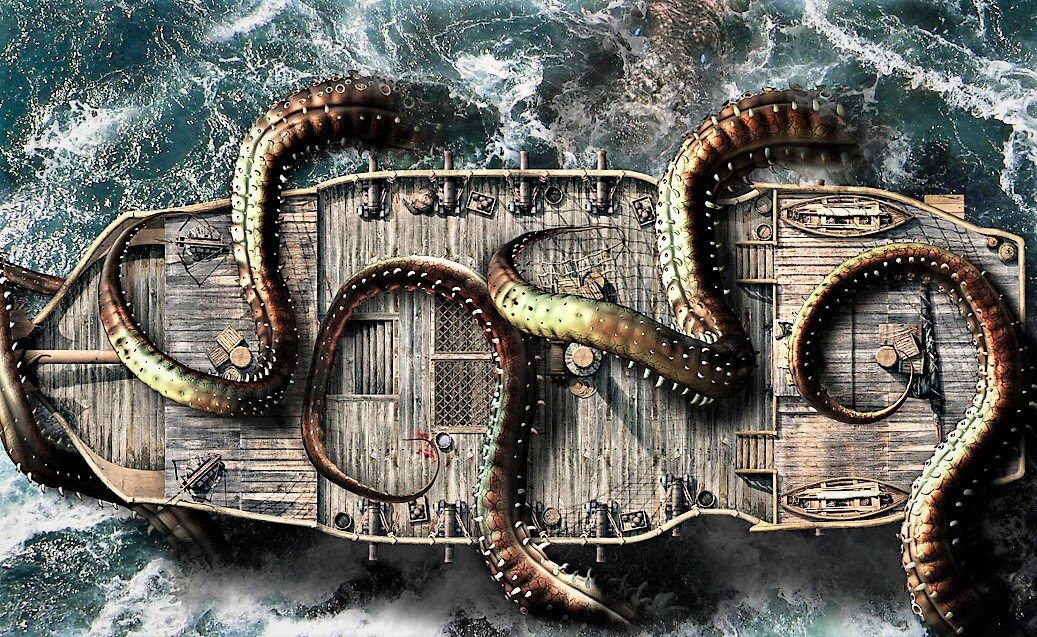 Согласно скандинавской легенде 13 века, герой Эрвар-Оддр и его сын вступили в контакт с двумя угрожающими существами из глубин. Kraken происходит от норвежского слова krake, которое вероятно, связано с немецким krake, что означает осьминог. Когда-то было время, когда произнося имя, Кракен пробегали мурашки по спине моряка. Легендарный зверь был известен тем, что тащил целые корабли в водные глубины. Сегодня мы видим монстра в основном как вымысел, но это не значит, что он не имеет связи с реальностью. Кракен изначально был больше похож на краба. В то время как многие современные изображения показывают, Кракена как гигантского кальмара,но ранее его описывали как краб. В учетных записях расходятся во мнениях о том, насколько велик Кракен на самом деле, но одно можно сказать наверняка: он огромен. Описания идут от расплывчатых (длина 10 кораблей) до более конкретных (полтора километра). Некоторые рассказы говорят, что незадачливые моряки ошибочно принемали зверя за остров и попыталис