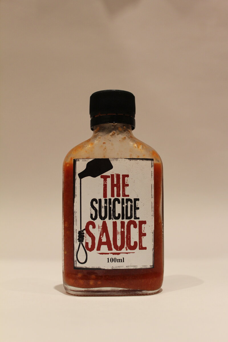 Состав: вода, уксус, перец Каролина Рипер, соль, сок лайма, перец Тринидадский Скорпион, Нага Джолокия, Хабанеро