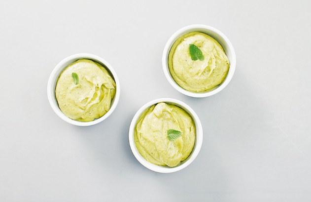 Этот эффектный мусс невероятно прост в приготовлении, ему лишь надо дать как следует замерзнуть. Восемь часов, конечно, не шутка, но ожидание себя оправдает — в конце концов десерт приобретает удивительную шелковую текстуру, которой не добиться простым взбиванием. Холод, впрочем, здесь нужен еще и для того, чтобы придать муссу некоторое сходство с сорбетом, готовить который — занятие куда более изнурительное. Ингредиенты Авокадо 3 штуки Мед 5 столовых ложек Несоленые фисташки 130 г Вода ¼ стакана Сок лайма 1 чайная ложка Морская соль щепотка 1. Очищенные от скорлупок несоленые фисташки замочить в питьевой воде на три часа, после чего слить воду и высушить орехи, выложив на чистое кухонное полотенце. 2. Пересыпать фисташки в чашу блендера, добавить мед, одну столовую ложку воды и взбить до однородности. Переложить фисташковую массу в миску и поставить в холодильник на пять часов или на ночь. 3. Охлажденные авокадо (их можно вместе с фисташковой массой убрать на пять часов в