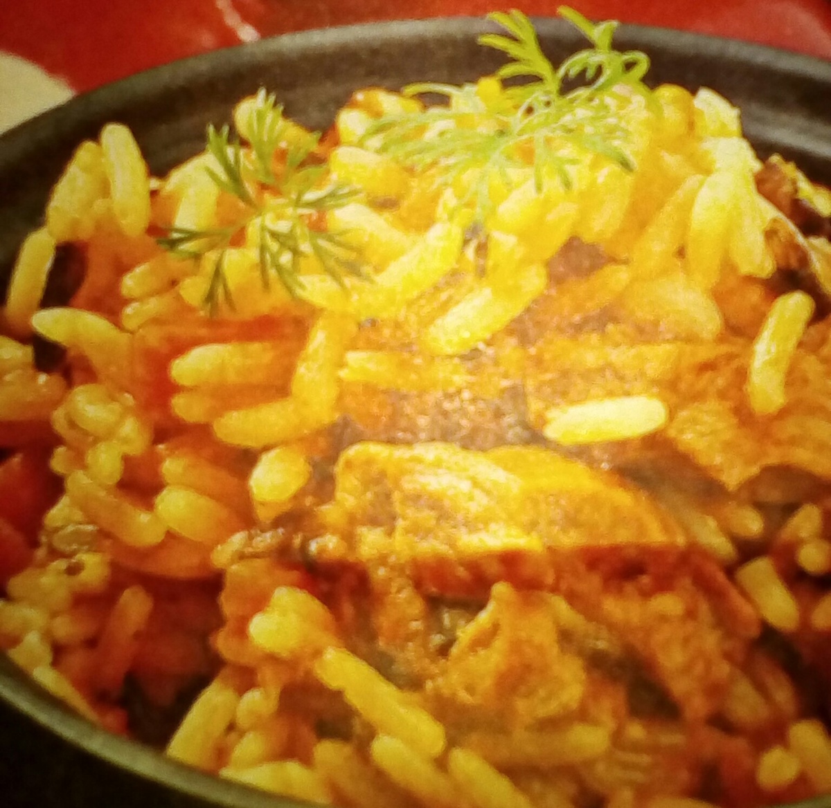 Нам понадобится: *1/2кг.-баранины на косточке *1кг.-моркови (желательно узбекской жёлтой) *4шт.-репчатого лука *400мл.-растительного масла *150г.-курдючного сала *20г.-сушёного барбариса *5головок-чеснока * 1кг.- рис для плова (можно заменить рисом для ризотто) *по 10г.-шафран и зира *соль-по вкусу Начинаем готовить: С кости срезать мякоть баранины,нарезать,сложить в миску. В отдельную посуду поместить кости с остатками мякоти на них. Рис замочить в подсоленной воде на 40мин. Морковь нарезать крупной соломкой,лук-кольцами. Казан раскалить на огне,положить в него измельчённое курдючное сало. Обжаривать сало,пока оно не станет золотисто-коричневым. Шкварки удалить. В казан влить масло. Когда закипит,опустить в него кости и обжарить до золотистого цвета. Добавить лук,и помешивая,жарить,пока луковые колечки не станут коричневатым. Положить в казан кусочки мякоти баранины. Перемешать и держать всё на огне 15мин.,после чего добавить морковь. Перемешать,залить водой(вода должна полностью п