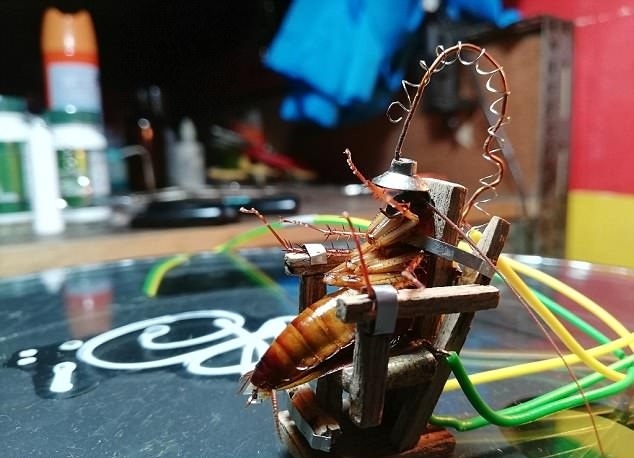 Скульптор из Филиппин Gabriel Tuazon, создал электрический стул, для надоедливого таракана. Таракан залетел к нему в окно, и начал очень надоедать своими звуками скульптору, за что тот, решил его наказать. Gabriel Tuazon смастерил электрический стул, и на нем казнил таракана. Вот шокирующие фото . После экзекуции, скульптор похоронил насекомое, соорудив ему гробик.