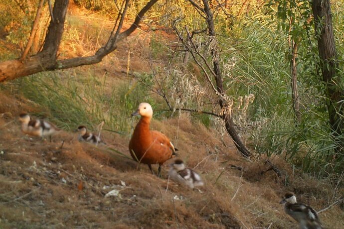 В кадр частенько попадают не только одиночные животные, но и целые семейства. Например недавно фотоловушка сфотографировала птицу огарь с выводком. Но самое большое умиление вызвала попавшая в объектив семья степной кошки. Мать кошка порадовала учёных, посадив свой выводок перед камерой и любовно вылизав малышей.