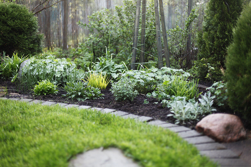 1. Сажаю растения плотно - так, чтобы в середине лета они полностью покрывали почву. К сожалению, идеала тут достичь непросто - с одной стороны, могут остаться пробелы, с другой - растения могут начать друг другу мешать. Кроме того, они постепенно разрастаются, и надо быть готовым их поделить или отсадить лишнее.