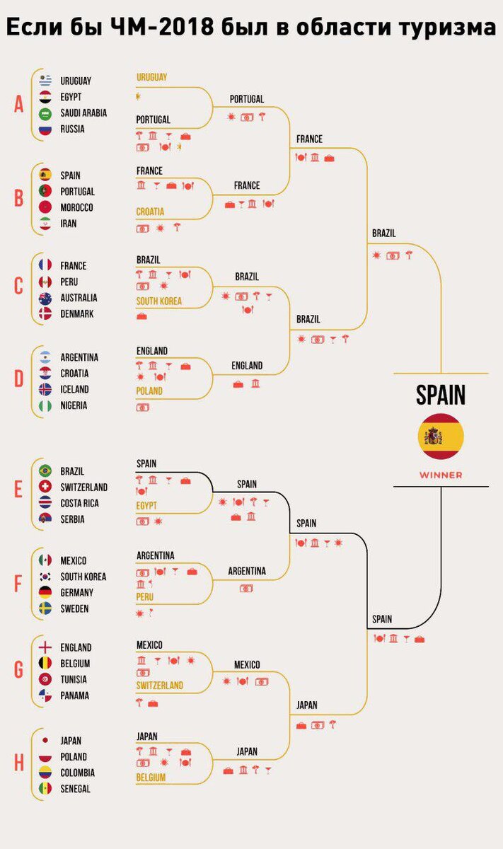Чемпионат мира по футболу 2018 года вышло всего восемь команд осталось и финал всего за неделю. В интернете, еще один Чемпионат мира по футболу спокойно работает свой путь к завершению, разработанный транспортной компанией Taxi2Airport. Чемпионат мира по путешествиям следует точно такому же процессу, как и чемпионат мира по футболу, но он сталкивает страны друг с другом на основе туристической привлекательности. Ваша страна может выставить хорошую футбольную команду, но насколько легко для посетителя найти идеальные пары местных вин с ужином? Как насчет посадки визы или найти быстрый транспорт из аэропорта в отель? Чемпионат мира по путешествиям начался со стран, объединенных в те же группы, в которых мы наблюдали за прогрессом команд в России за последние две недели. Каждая из 32 команд, прошедших квалификацию в FIFA, имела место в восьми группах и начинала соревнование на равных в этой группе. Факторами в пользу включенными кухни, погода, культура, ночная жизнь, шопинг и пейзажи. Б
