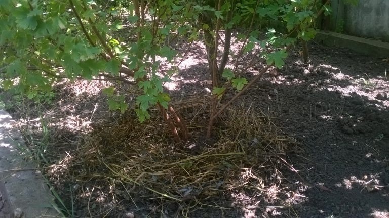 Пласт выкладывается вокруг кустов, а на плантациях – в междурядьях. Особенно важно предохранять от высыхания землю вокруг молодых саженцев смородины или крыжовника.