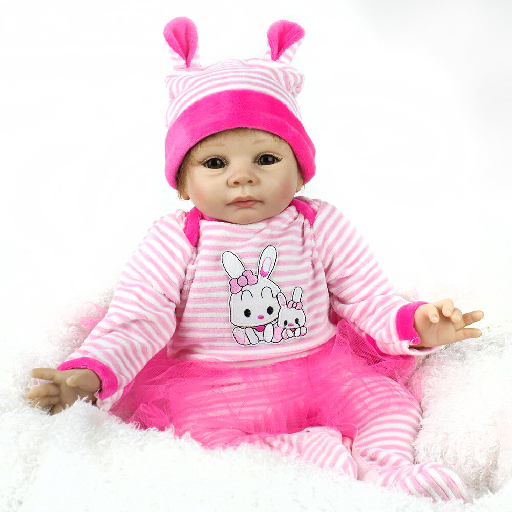 Малышка Дина – отличный подарок вашей дочурке. Она обязательно полюбит эту куклу, так как играть с ней очень интересно. Дина выглядит, как настоящая маленькая девочка. У нее реалистичные черты лица и открытый добрый взгляд. Карие глаза куклы сделаны из силикона. Верхние ресницы из мохера аккуратно приклеены вручную. Губы, румянец, брови прорисованы качественными акриловыми красками, которые не выгорят на солнце и не сотрутся со временем. У девочки короткие мохеровые волосы. Тело куклы – мягконабивное, а ручки, ножки и голова сделаны из экологически чистого упругого материала – силикона. Туловище подвижное и может принимать любые положения. При росте 55 см малышка весит всего 1,5 кг, благодаря чему ребенок сможет брать ее на руки. Реборн отлично подходит для ролевой игры, так как имеет реалистичные черты. Кукле подойдет одежда для новорожденных. В продажу она идет в красивом розовом костюме. Источник: https://reborn-toy.ru/reborn-dina-537/