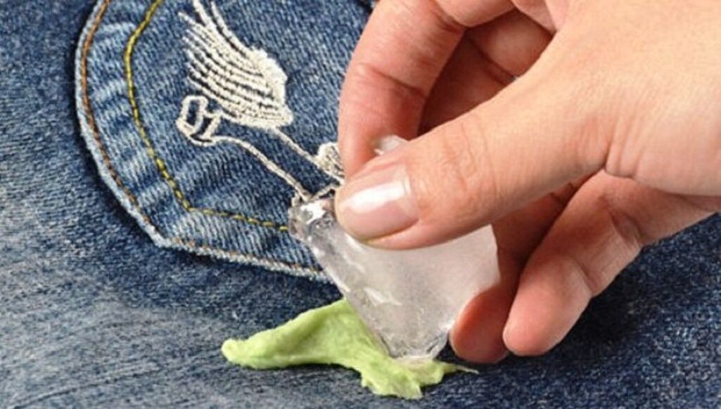 Проблему, как убрать жвачку с джинсов, брюк или юбки, удастся решить с помощью холода. Подойдут морозильная камера и сухой лед. Во время морозов вещь вывешивают на балкон, если он не застеклен. Важно учитывать, что холод помогает не моментально. Придется подождать 30–60 минут, поэтому данные способы не подходят, если надо быстро удалить жевательную резинку.