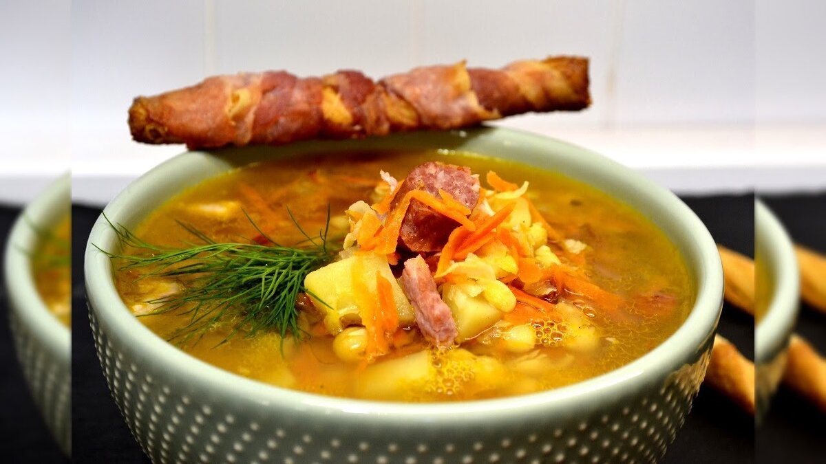 Потребуется следующий список ингредиентов: 1. Копчёные свиные рёбрышки - 0,5 кг; 2. Горох колотый - 0,25...0,3 кг; 3. Лук репка, среднего размера - 1шт; 4. Вода холодная - 2,5 л; 5. Соль по вкусу; 6. Лавровый лист 2-3 шт.; 7. Базилик сушёный или свежий; 8. Кастрюля такая, чтобы всё поместилось, с запасом; 9. Время - примерно 2 часа. Приготовление: Перед тем, как закинуть копченые ребра в кастрюлю с холодной водой, ножом разрезаем их вдоль на поштучно. Если ребра слишком длинные, их необходимо укоротить. Делаю это практически без топора и грохота так: беру ножовку по металлу и надпиливаю кости с вогнутой стороны, переворачиваю и стукаю кулаком по месту надпила, кость ломается. Ребра в кастрюлю, наливаем холодную воду, ставим на сильный огонь. Закипело. Если пена уж сильно грязная, то снимаем немножко. Не переусердствуйте, в пене весь смак! Убавляем огонь до минимума, лишь бы кипело. Варим, пока мясо не начнет заворачиваться на кости. Если свинья была молода, то по