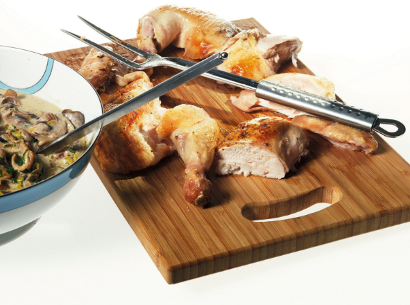 Запеченная курица с овощами — классический французский рецепт, который по загадочной привычке давать блюдам не имеющие особого отношения к делу географические имена сами французы называют английским. Тем не менее, это один из самых популярных и простых рецептов с использованием духовки. Особую роль стоит уделить сливочному маслу — его не должно быть мало, чтобы птица не получилась сухой, ведь вся прелесть блюда должна состоять из хрустящей корочки снаружи и нежнейшего мяса внутри. Ингредиенты Курица 1,299 кг Красный лук 1 головка Желтый лук 1 головка Чеснок 4 зубчика Петрушка 20 г Морковь 1 штука Сливочное масло 50 г Сельдерей 1 стебель Букет гарни 1 штука Растительное масло 50 мл 1. Курицу избавить от жира в брюшной области и в области грудки. Чтобы извлечь жир с грудки, нужно сделать разрез на коже спины и вывернуть кожу, как будто вы снимаете с курицы свитер. Потом кожу надо натянуть обратно, а разрез запахнуть, как будто ничего не было. 2. Красный лук с чесноко